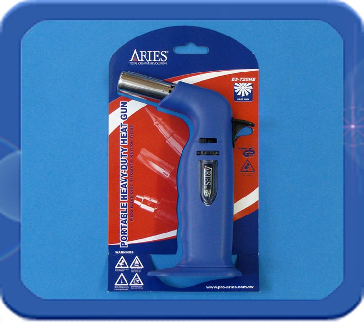 De Aries ES-720HB is een handbrander met hetelucht. Geschikt voor verhitten en drogen algemeen, buizen en krimpkous opkrimpen, ontdooien van bevroren sloten, lijmen en andere stoffen activeren, Vinyl soepel maken e.d. De brander is voorzien van een pi?zo ontsteking.