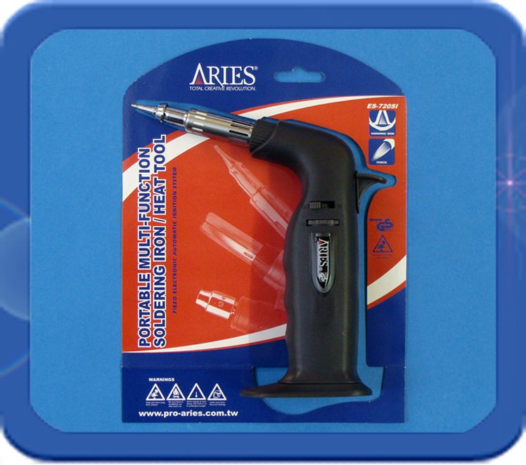 De Aries ES-720SI is een handbrander met een dubbele functie, de brander kan ingezet worden met open vlam en met soldeerfunctie. Geschikt voor solderen, buitenactiviteiten, camping, reparaties in en rond huis, laboratoriums, reparatie van elektrische en elektronische circuits, aansluitingen op printplaten, solderen algemeen, reparatie van sieraden en brilmonturen e.d. De brander is voorzien van een pi?zo ontsteking.