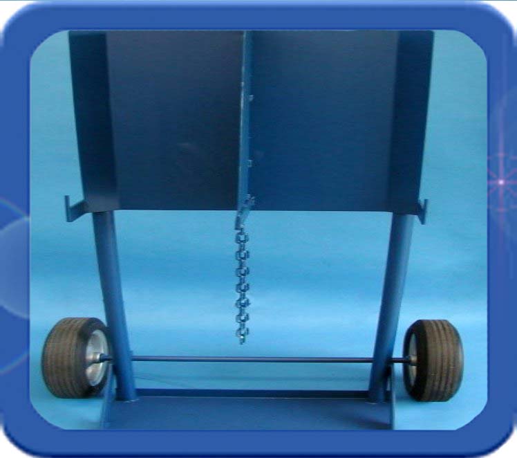 Het vervoeren van een 20 liter of een 50 liter cilinder gaat heel eenvoudig met deze fleswagen. Na de fles op de fleswagen geplaatst te hebben moet men de fles met de ketting vastzetten om omvallen te voorkomen. De hoogte van de ketting kan snel aangepast worden om een 20 of een 50 liter cilinder te vervoeren. De fleswagen heeft massieve rubberen wielen met een diameter van 200 mm.