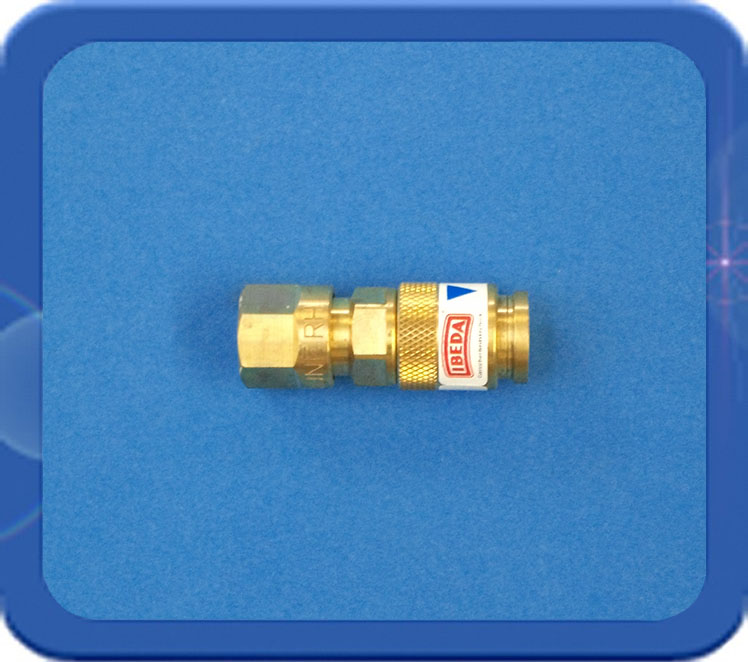 Deze Ibeda snelkoppeling is geschikt voor montage aan een reduceerventiel. De bijbehorende insteektule (meestal 750014) is niet voorzien van een klep. Bij ontkoppelen van de slang is alleen het vrouwtje dat op het reduceerventiel gemonteerd is afgesloten. Indien de slang vaak van een reduceerventiel losgekoppeld moeten worden is het erg makkelijk als er een Ibeda snelkoppeling in het systeem ingebouwd is. Primaire aansluiting is een 3/8"r wartel met bolconus. De secundaire aansluiting is een insteektuledeel voor een zuurstoftule volgens Iso.7289 meestal voor een 6 mm slang. De Iso 7289 Ibeda snelkoppelingen zijn zodanig ontworpen dat de Iso koppelingen van alle merken met elkaar uitwisselbaar zijn. De standaard Ibeda Ibeda snelkoppeling (type 5024) is veel goedkoper en kwalitatief zeker van een vergelijkbare kwaliteit. De standaard Ibeda Ibeda snelkoppeling is echter niet uitwisselbaar met andere merken Ibeda snelkoppelingen. De meest verkochte aansluiting op zuurstof reduceerventielen is in West Europa is 1/4"r. Een enkele keer komt u een 3/8"R aansluiting tegen. Op Amerikaanse reduceerventielen komt u meestal een 9/16"UNF aansluiting tegen. Controleer of uw reduceerventiel een 3/8"R aansluiting heeft.