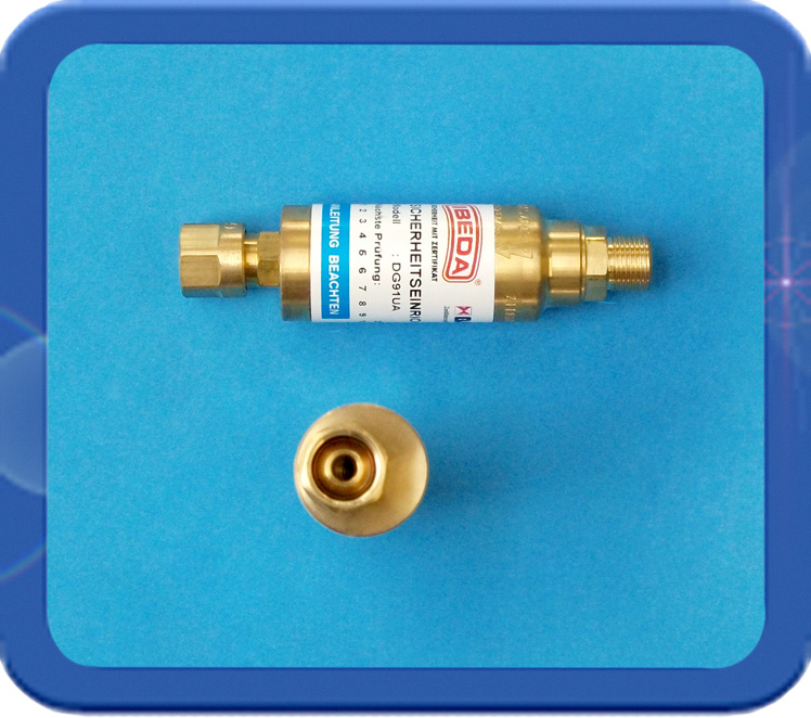 Deze Ibeda vlamdover is geschikt voor montage aan een reduceerventiel met grote doorlaat. Deze Ibeda vlamdover bevat een vlamdovend element (sinterbrons) en een terugslagklep. Een smeltpatroon zij in deze Ibeda vlamdover niet ingebouwd. Primaire aansluiting is een 3/8"r wartel met bolconus. De secundaire aansluiting is 3/8"r uitwendig met een holconus. Capaciteit bij een voordruk: van 0.3 0.6 0.9 1.5 2.5 5.0 bar is 2.4 4.2 6.2 10.5 16.2 31.3 Nm3/uur. De Ibeda vlamdover voldoet aan de in de Europese Norm 730 gestelde eisen.