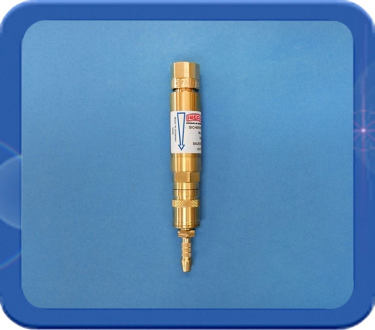 Deze Ibeda vlamdover is geschikt voor montage aan een reduceerventiel. Voor een zuurstof reduceerventiel is het gebruik van een Ibeda vlamdover niet verplicht. Bij sommige (vooral grote bedrijven) is het gebruik van de Ibeda vlamdover op zuurstof reduceerventielen door het bedrijf in de bedrijfvoorschriften opgenomen. Deze Ibeda vlamdover bezat een vlamdovend element (sinterbrons). Een terugslagklep en een smeltpatroon zijn in deze Ibeda vlamdover niet ingebouwd. Primaire aansluiting is een 3/8"r wartel met bolconus. De secundaire aansluiting is een insteektule voor 6 mm slang, volgens Europese Norm 560, waarmee een slang zeer eenvoudig van de Ibeda vlamdover los te koppelen is. De maximaal toelaatbare druk voor zuurstof is 20 bar. Capaciteit bij een voordruk van: 0.3 0.6 0.9 1.5 2.5 5.0 bar is 2.4 4.2 6.2 10.5 16.2 31.3 Nm3/uur De meest voorkomende aansluitingen van zuurstofIbeda vlamdovers is in europa 1/4"r. Soms kom je voor Amerikaanse reduceerventielen een 9/16"r UNF aansluiting tegen. De Ibeda vlamdover voldoet aan de in de Europese Norm 730 gestelde eisen.
