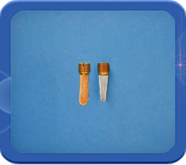Deze zeefschroef heeft een messing bevestigingsdeel met een M7x0.75 draad. Het zeefgedeelte is gemaakt van monel 400 draad met een diameter van 0.04 mm. De maaswijdte is 0.05-0.055 mm. Het zeefgedeelte is gemaakt volgens EN 10204. Voor acetyleen en "Mison" wordt deze zeefschroef toegepast. Voor zuurstof, propaan en luchtgassen gebruiken we de zeefschroef met een zeef van fosfor brons (991010).
