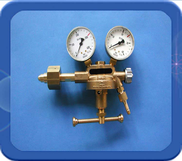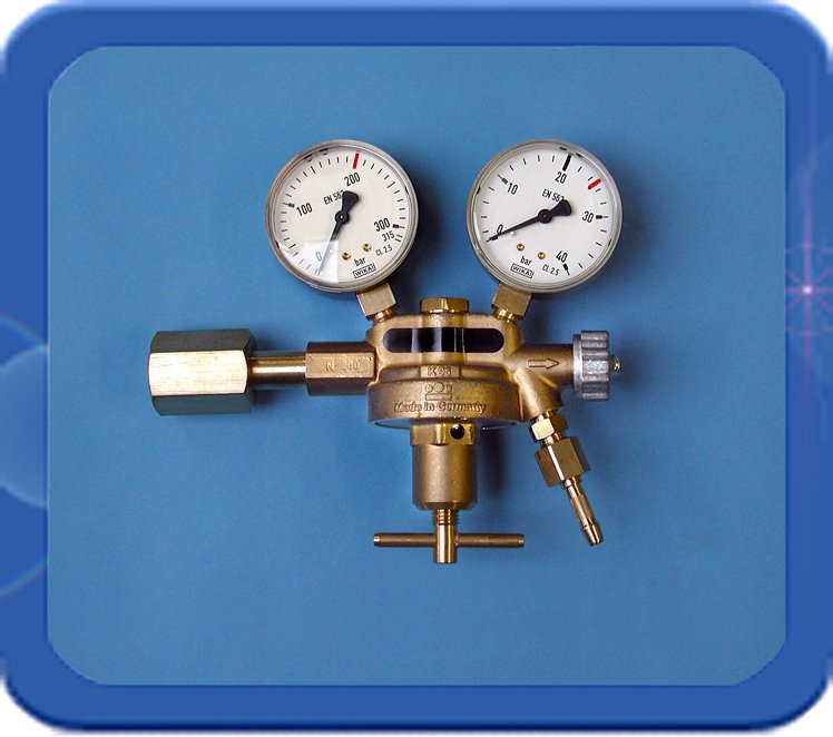 Om de druk van een stikstof cilinder (tot 200 bar) te reduceren naar een werkdruk instelbaar tussen de 0 en 25 bar kunt u dit reduceerventiel gebruiken. De primaire aansluiting is 24.32 R inwendig (voor RU 3 cilinder). De secundaire aansluiting is 1/4"R uitwendig met een slangtule voor een 6 mm slang (EN 560). De manometers rond 63 mm zijn klasse 2.5. Het ventiel is voorzien van een zijafsluiter. De afblaasveiligheid staat iets boven de 25 bar afgesteld.