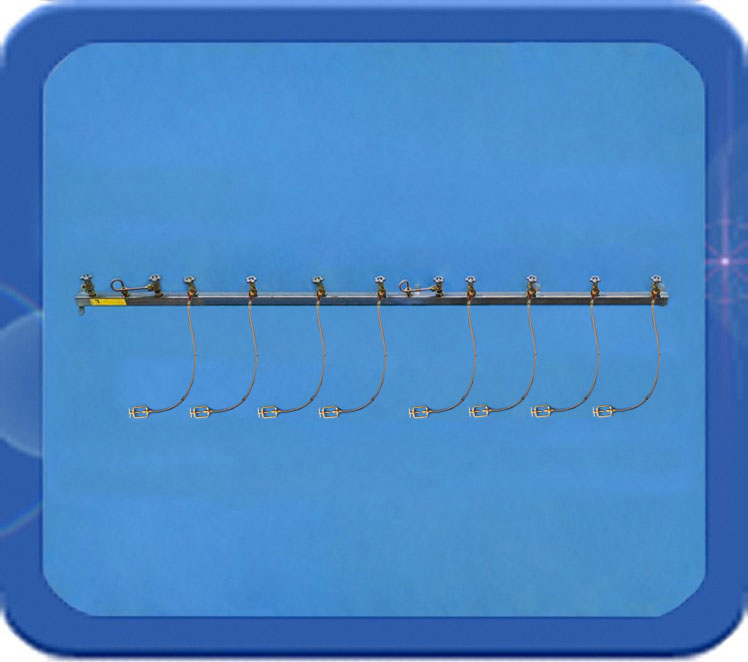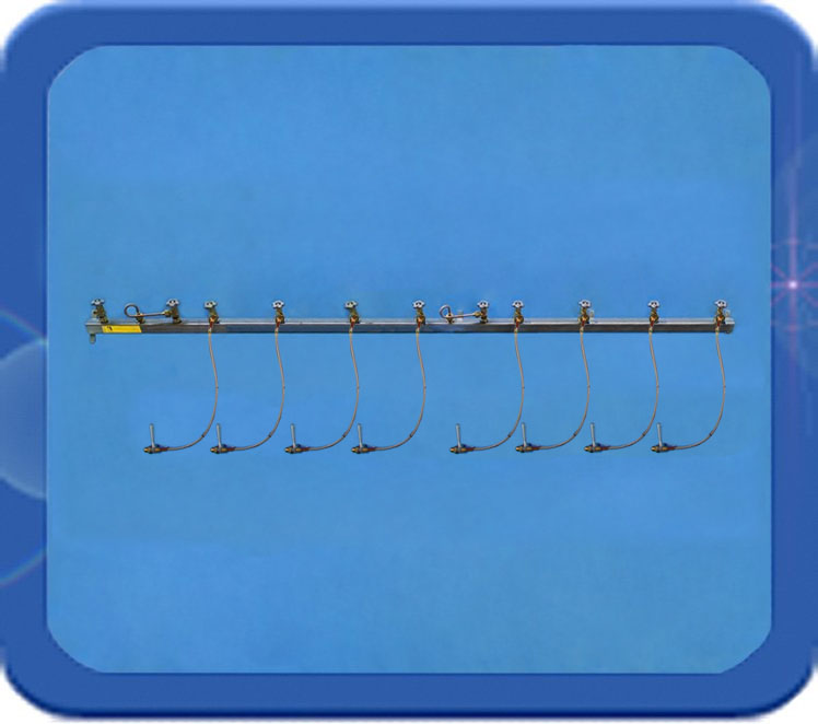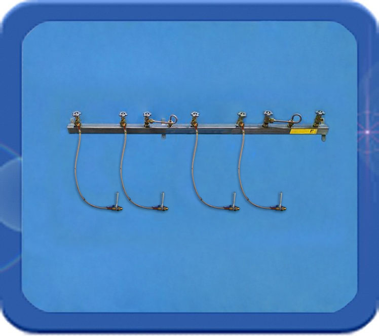 De batterijbalk 2 x 4 cilinders bestaat uit een RVS hoekprofiel met 2 x vier cilinderafsluiters, 2 sectieafsluiters en een hoofdafsluiter aan de linker zijde, acht 75 cm RVS/PTFE batterijslangen met beugel aansluitingen voor op de cilinder. Met de sectieafsluiters kan de linker of de rechter sectie afgesloten worden. Staan beide sectieafsluiters open, dan wordt uit alle acht de flessen tegelijk afgenomen. Alle afsluiters staan onder een hoek van 45 graden naar beneden gericht, zodat de afsluiters makkelijk te openen zijn en de slang niet kan knikken. Voor de hoofdafsluiter houden we de 21,8 l uitwendige cilinderaansluiting aan . De afstand tussen de cilinderafsluiters komt overeen met de afstand tussen de cilinders bij de flesbalk.