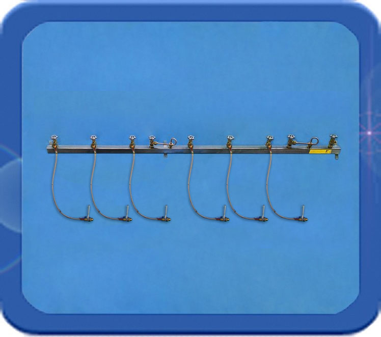 De batterijbalk 2 x 5 cilinders bestaat uit een RVS hoekprofiel met 2 x vijf cilinderafsluiters, 2 sectieafsluiters en een hoofdafsluiter aan de rechter zijde, tien 75 cm kunststof batterijslangen met 21,8 r aansluitingen voor op de cilinder. Met de sectieafsluiters kan de linker of de rechter sectie afgesloten worden. Staan beide sectieafsluiters open, dan wordt uit alle tien de flessen tegelijk afgenomen. Alle afsluiters staan onder een hoek van 45 graden naar beneden gericht, zodat de afsluiters makkelijk te openen zijn en de slang niet kan knikken. Om bij het aansluiten aan de cilinder torsie in de slang te voorkomen zijn de slangen voorzien van een anti-meedraaisleutel. De slangen zijn voorzien van een slangbreukkabel. Voor de hoofdafsluiter houden we de 21,8 r cilinderaansluiting van de gasfles aan . De afstand tussen de cilinderafsluiters komt overeen met de afstand tussen de cilinders bij de flesbalk.