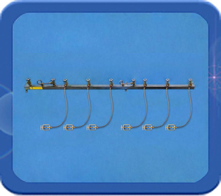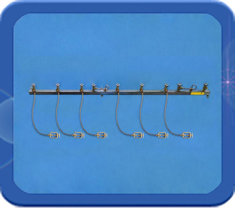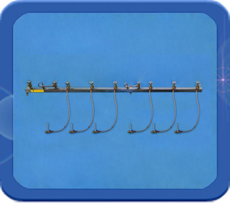 De batterijbalk 2 x 3 cilinders bestaat uit een RVS hoekprofiel met 2 xdrie cilinderafsluiters, 2 sectieafsluiters en een hoofdafsluiter aan de linker zijde, zes 75 cm kunststof batterijslangen met 24,32 aansluitingen voor op de cilinder. Met de sectieafsluiters kan de linker of de rechter sectie afgesloten worden. Staan beide sectieafsluiters open, dan wordt uit alle zes de flessen tegelijk afgenomen. Alle afsluiters staan onder een hoek van 45 graden naar beneden gericht, zodat de afsluiters makkelijk te openen zijn en de slang niet kan knikken. Om bij het aansluiten aan de cilinder torsie in de slang te voorkomen zijn de slangen voorzien van een anti-meedraaisleutel. De slangen zijn voorzien van een slangbreukkabel. Voor de hoofdafsluiter houden we de 24,32 cilinderaansluiting van de gasfles aan . De afstand tussen de cilinderafsluiters komt overeen met de afstand tussen de cilinders bij de flesbalk.