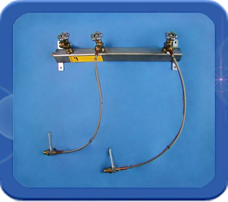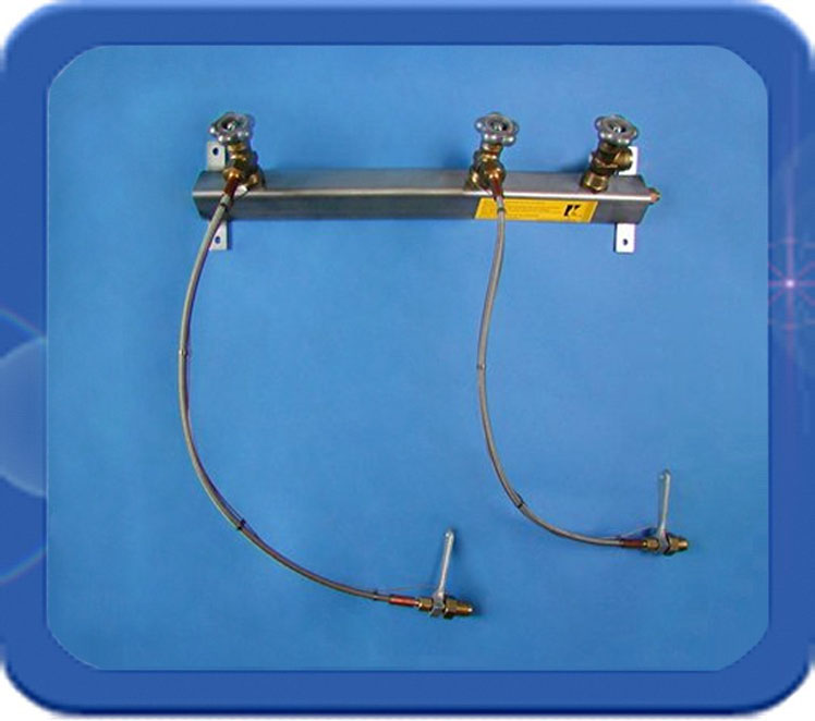 De batterijbalk 1 x 2 cilinders bestaat uit een RVS hoekprofiel met twee cilinderafsluiters en een hoofdafsluiter aan de linker zijde, twee 75 cm RVS/PTFE batterijslangen met beugel aansluitingen voor op de cilinder. De afsluiters staan onder een hoek van 45 graden naar beneden gericht, zodat de afsluiters makkelijk te openen zijn en de slang niet kan knikken. De hoofdafsluiter heeft een 21,8 l aansluiting . De afstand tussen de cilinderafsluiters komt overeen met de afstand tussen de cilinders bij de flesbalk.