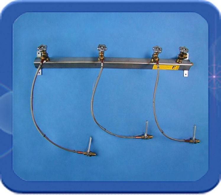 De batterijbalk 1 x 3 cilinders bestaat uit een RVS hoekprofiel met drie cilinderafsluiters en een hoofdafsluiter aan de rechter zijde, drie 75 cm RVS/PTFE batterijslangen met beugel aansluitingen voor op de cilinder. De afsluiters staan onder een hoek van 45 graden naar beneden gericht, zodat de afsluiters makkelijk te openen zijn en de slang niet kan knikken. De hoofdafsluiter heeft een 21,8 l aansluiting . De afstand tussen de cilinderafsluiters komt overeen met de afstand tussen de cilinders bij de flesbalk.