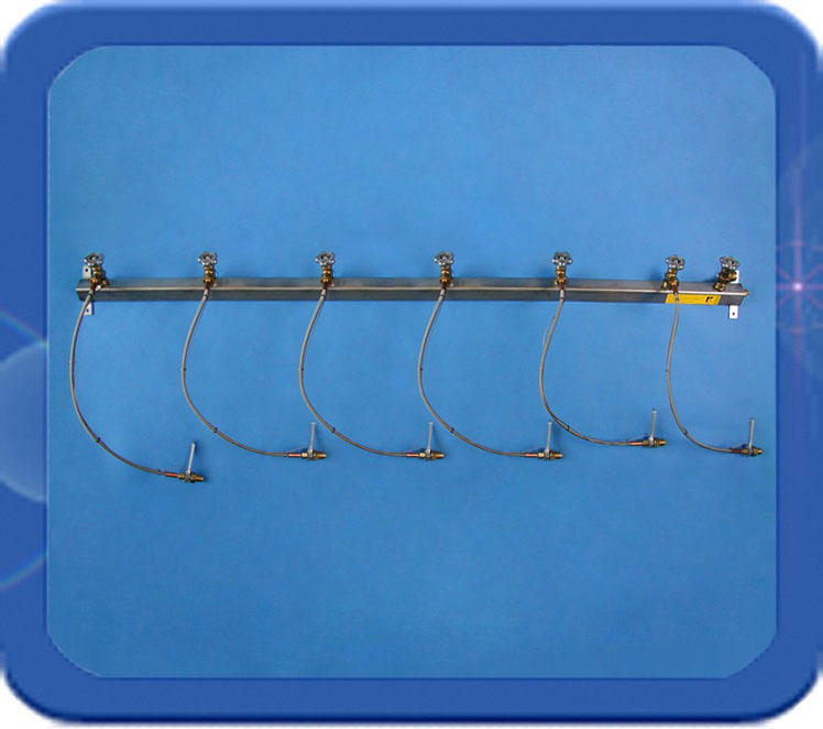 De batterijbalk 1 x 6 cilinders bestaat uit een RVS hoekprofiel met zes cilinderafsluiters en een hoofdafsluiter aan de rechter zijde, zes 75 cm RVS/PTFE batterijslangen met beugel aansluitingen voor op de cilinder. De afsluiters staan onder een hoek van 45 graden naar beneden gericht, zodat de afsluiters makkelijk te openen zijn en de slang niet kan knikken. De hoofdafsluiter heeft een 21,8 l aansluiting . De afstand tussen de cilinderafsluiters komt overeen met de afstand tussen de cilinders bij de flesbalk.