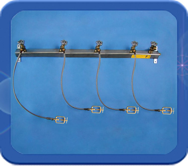 De batterijbalk 1 x 4 cilinders bestaat uit een RVS hoekprofiel met vier cilinderafsluiters en een hoofdafsluiter aan de linker zijde, vier 75 cm kunststof batterijslangen met 24,32 aansluitingen voor op de cilinder. De afsluiters staan onder een hoek van 45 graden naar beneden gericht, zodat de afsluiters makkelijk te openen zijn en de slang niet kan knikken. Om bij het aansluiten aan de cilinder torsie in de slang te voorkomen zijn de slangen voorzien van een anti-meedraaisleutel. De slangen zijn voorzien van een slangbreukkabel. De hoofdafsluiter heeft een 24,32 aansluiting . De afstand tussen de cilinderafsluiters komt overeen met de afstand tussen de cilinders bij de flesbalk.