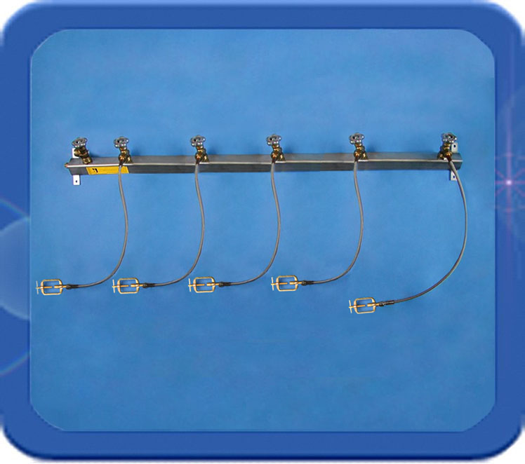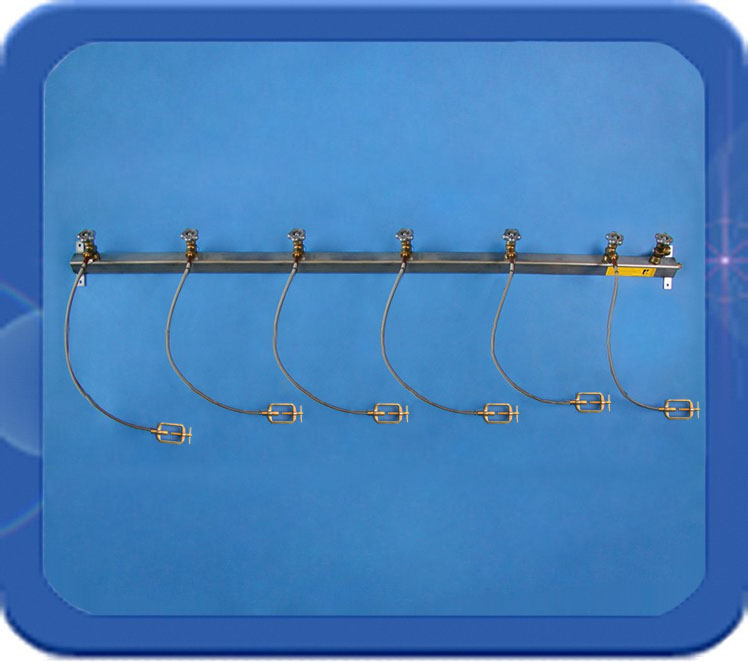 De batterijbalk 1 x 6 cilinders bestaat uit een RVS hoekprofiel met zes cilinderafsluiters en een hoofdafsluiter aan de linker zijde, zes 75 cm kunststof batterijslangen met 24,32 aansluitingen voor op de cilinder. De afsluiters staan onder een hoek van 45 graden naar beneden gericht, zodat de afsluiters makkelijk te openen zijn en de slang niet kan knikken. Om bij het aansluiten aan de cilinder torsie in de slang te voorkomen zijn de slangen voorzien van een anti-meedraaisleutel. De slangen zijn voorzien van een slangbreukkabel. De hoofdafsluiter heeft een 24,32 aansluiting . De afstand tussen de cilinderafsluiters komt overeen met de afstand tussen de cilinders bij de flesbalk.