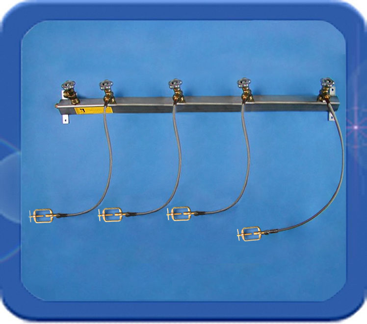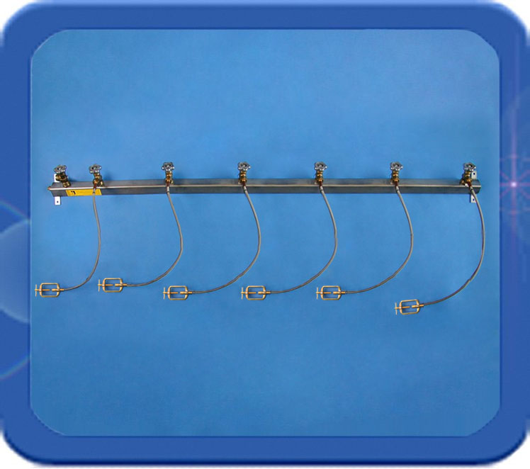De batterijbalk 1 x 5 cilinders bestaat uit een RVS hoekprofiel met vijf cilinderafsluiters en een hoofdafsluiter aan de linker zijde, viif 75 cm kunststof batterijslangen met 21,8 r aansluitingen voor op de cilinder. De afsluiters staan onder een hoek van 45 graden naar beneden gericht, zodat de afsluiters makkelijk te openen zijn en de slang niet kan knikken. Om bij het aansluiten aan de cilinder torsie in de slang te voorkomen zijn de slangen voorzien van een anti-meedraaisleutel. De slangen zijn voorzien van een slangbreukkabel. De hoofdafsluiter heeft een 21,8 r aansluiting . De afstand tussen de cilinderafsluiters komt overeen met de afstand tussen de cilinders bij de flesbalk.