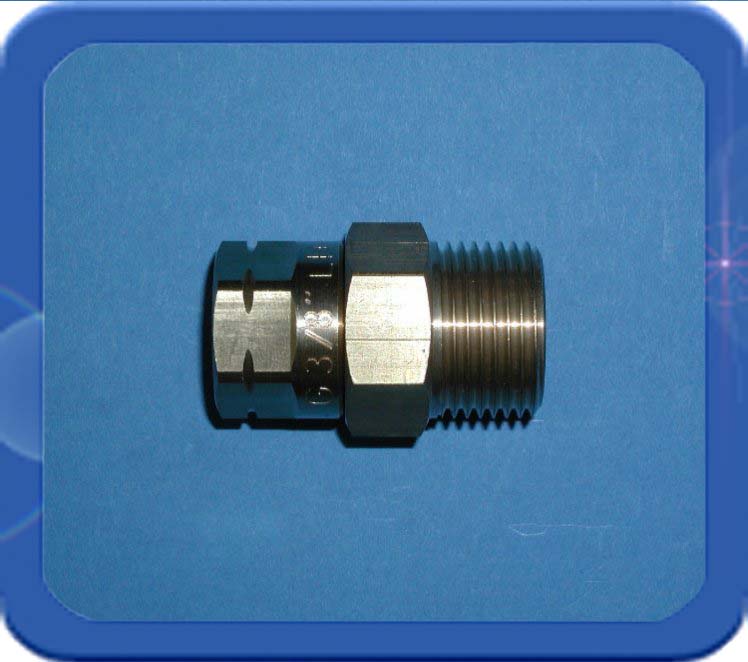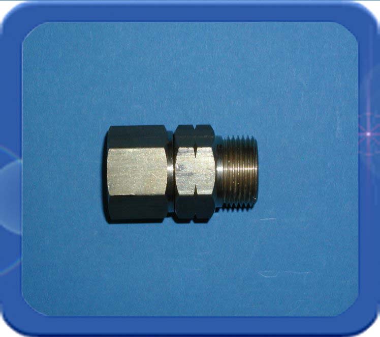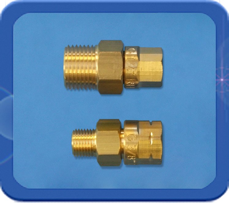 Dit zeer compacte wartelende verloop gaat van 3/8"r uitwendig hol met zeskant 19 mm naar een 3/8"l inwendige wartel met bolconus (zeskant 19 mm). Hierop kan een 3/8"l uitwendige holconische aansluiting met een metallische dichting aangesloten worden.