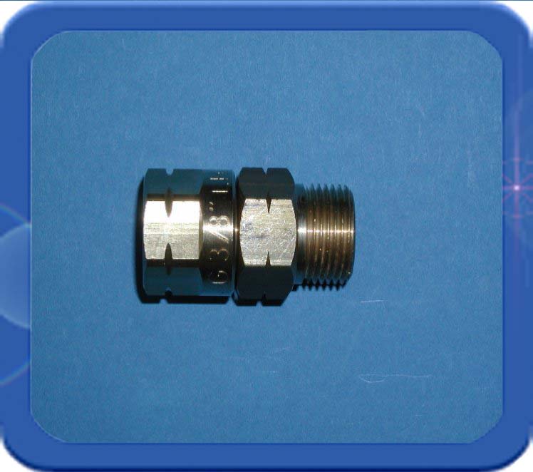 Dit zeer compacte wartelende verloop gaat van 1/4"r uitwendig hol met zeskant 14 mm naar een 3/8"r inwendige wartel met bolconus (zeskant 19 mm). Hierop kan een 3/8"r uitwendige holconische aansluiting met een metallische dichting aangesloten worden.
