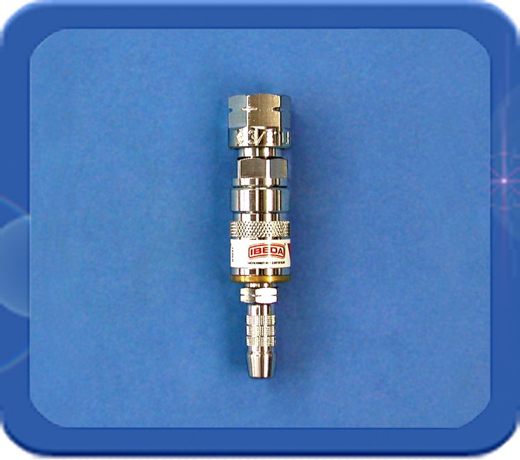 Deze Ibeda snelkoppeling is geschikt voor montage aan een reduceerventiel. De insteektule is niet voorzien van een klep. Bij ontkoppelen van de slang is alleen het vrouwtje dat op het reduceerventiel gemonteerd is afgesloten. Indien de slang vaak van het reduceerventiel losgekoppeld moeten worden, is het erg gemakkelijk als er een Ibeda snelkoppeling in het systeem is ingebouwd. Primaire aansluiting is een 3/8"L wartel met bolconus. De secundaire aansluiting is een insteektule voor een 6 mm slang volgens EN 559. Ibeda Ibeda snelkoppelingen hebben het dichtvlak van de koppeling halverwege het cilindrische deel van de insteektule zitten. Hierdoor is de kans op een beschadiging van het dichtvlak erg klein.
