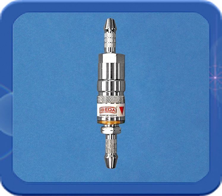 Deze Ibeda snelkoppeling is geschikt voor het verlengen van twee slangen. Bij ontkoppelen van de insteektule is dit vrouwtje dat aan een slang gemonteerd is afgesloten. Indien de slangen vaak verlengd of losgekoppeld moeten worden, is het erg gemakkelijk als er een Ibeda snelkoppeling in het systeem is ingebouwd. De slangtule voor een 8mm slang volgens EN 560(andere tulematen zijn leverbaar). Deze Ibeda snelkoppeling is speciaal voor gebruik met acetyleen, propaan, Tetreen of Mapp-gas.